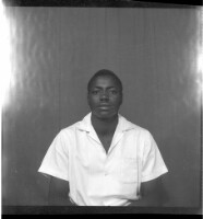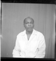 - A man standing in profile in the studio wearing a track jacket and black pants with one hand in his pocket and a cigarette in the other hand.