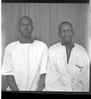 - Two men sitting facing forward in the studio wearing dress shirts and t-shirts.