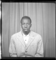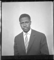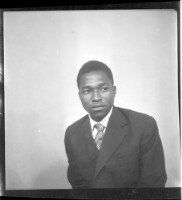 - A man wearing a white shirt, black suit, and tie sitting facing forward in the studio.