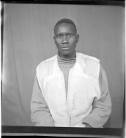 - A man wearing a white shirt, white suit, and tie sitting facing forward in the studio.