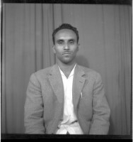 - A young man wearing a dress shirt sitting facing forward in the studio.