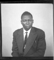 A man wearing a short sleeved jacket white shirt, and necktie sitting in profile in the studio.