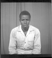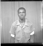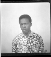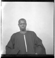 - A man sitting in the studio wearing a white boubou with a pen in the pocket.