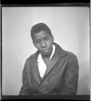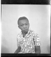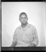 A young man sitting wearing a short sleeved shirt facing forward in the studio.