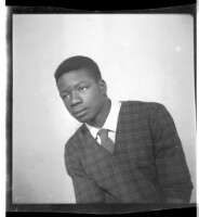 - A man wearing a dress shirt sitting facing forward in the studio.