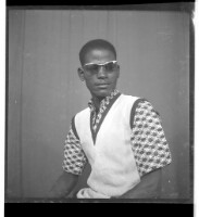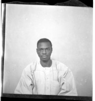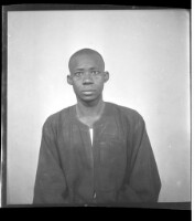A man sitting facing forward wearing a boubou in the studio.