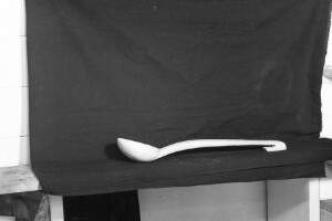 Wooden spoon - from the collection of NEM; town of Sofia; 1948-1952; taken by N. Nikolov; Black-and-white negative with good quality, dirty; 24x36 mm; Inventory in Bulgarian language