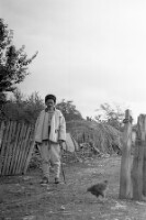 The painter Georgi Danchev from NEM in search of ethnographic materials during fieldwork; village of Vasilovtzi, district of Lom; 1946-1952; taken by N. Nikolov; black-and-white negative with good quality, dirty, scratchy; 24x36 mm; Inventory in Bulgarian language