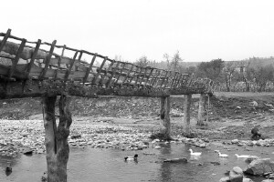 Wooden bridge; village of Novo Selo, district of Troyan; 1946-1952; taken by N. Nikolov; black-and-white negative with good quality, dirty, scratchy; 24x36 mm; Inventory in Bulgarian language