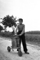 Child's costume and toy; village of Rayanovtsi, district of Belogradchik; 1946-1952; taken by N. Nikolov; black-and-white negative with good quality, dirty; 24x36 mm; Inventory in Bulgarian language