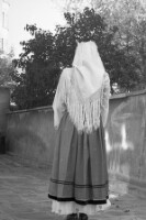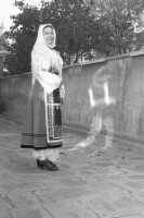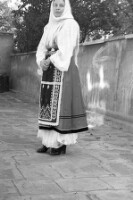 Female costume from NEM (profile); town of Sofia; 1946-1952; taken by N. Nikolov; black-and-white negative with good quality, dirty; 24x36 mm; Inventory in Bulgarian language