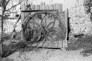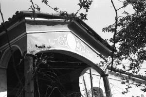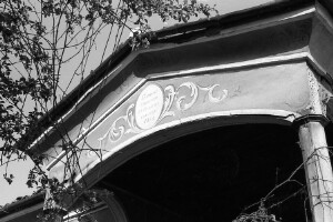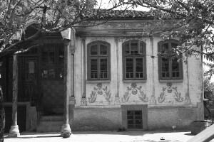The Dospevski's house - wallpainting and a pediment made by Stanislav Dospevski himself; town of Pazardzhik; 1946-1952; taken by G. Danchev; black-and-white negative with good quality, dirty, scratchy; 24x36 mm; Inventory in Bulgarian language