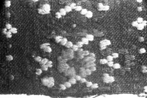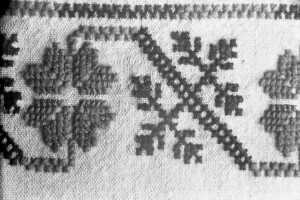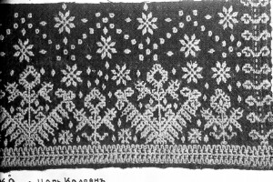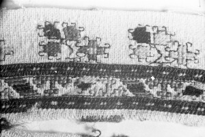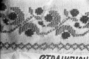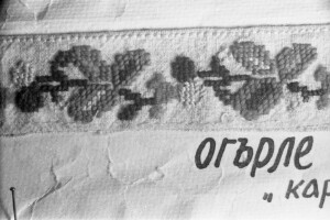 Embroidery from the collection of NEM, photographed for prof.Ivan Koev, долу надпис - "орле/ кар..."; town of Sofia; 1946-1952; taken by N. Nikolov; black-and-white negative with good quality, dirty; 24x36 mm; Inventory in Bulgarian language