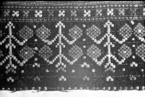 Embroidery from the collection of NEM, photographed for prof.Ivan Koev; town of Sofia; 1946-1952; taken by N. Nikolov; black-and-white negative with good quality, dirty; 24x36 mm; Inventory in Bulgarian language
