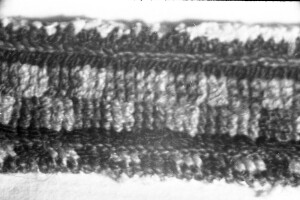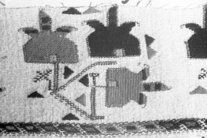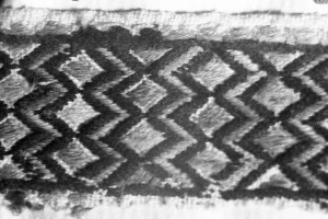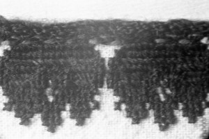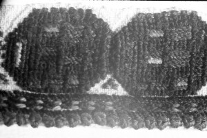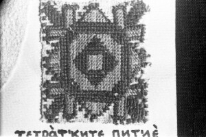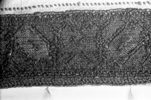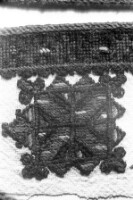 Embroidery from the collection of NEM, photographed for prof.Ivan Koev, долу надпис - "тетратеките питие(?)"; town of Sofia; 1946-1952; taken by N. Nikolov; black-and-white negative with good quality, dirty; 24x36 mm; Inventory in Bulgarian language