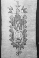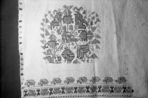 Embroidery from the collection of NEM, photographed for prof.Ivan Koev; town of Sofia; 1946-1952; taken by N. Nikolov; black-and-white negative with good quality, dirty; 24x36 mm; Inventory in Bulgarian language