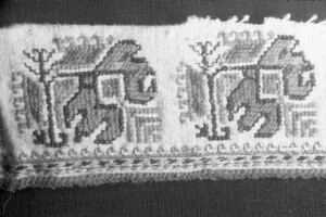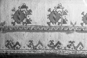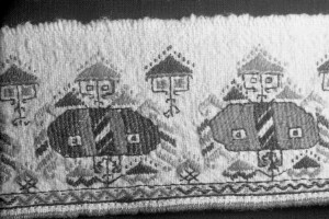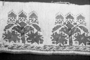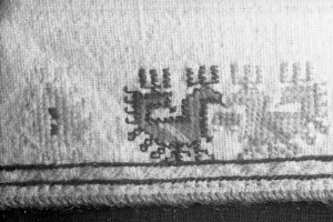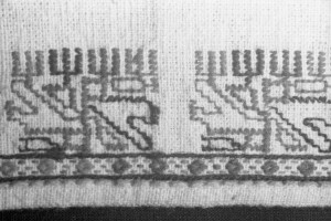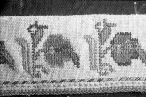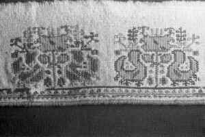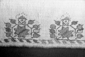 Embroidery from the collection of NEM, photographed for prof.Ivan Koev; town of Sofia; 1946-1952; taken by N. Nikolov; black-and-white negative, dirty; 24x36 mm; Inventory in Bulgarian language