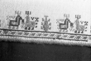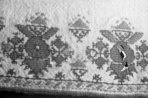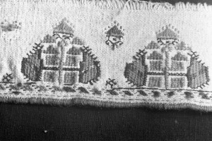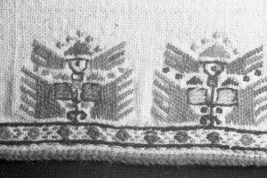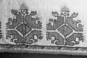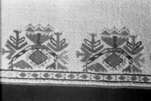 Embroidery from the collection of NEM, photographed for prof.Ivan Koev; town of Sofia; 1946-1952; taken by N. Nikolov; black-and-white negative, dirty; 24x36 mm; Inventory in Bulgarian language