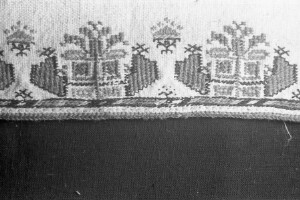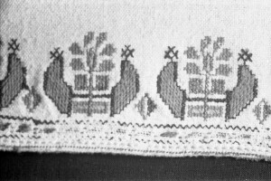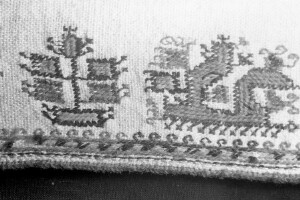 Embroidery from the collection of NEM, photographed for prof.Ivan Koev; town of Sofia; 1946-1952; taken by N. Nikolov; black-and-white negative with good quality, dirty; 24x36 mm; Inventory in Bulgarian language
