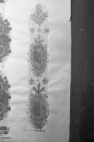 Embroidery from the collection of NEM, photographed for prof.Ivan Koev; town of Sofia; 1946-1952; taken by N. Nikolov; black-and-white negative, dirty; 24x36 mm; Inventory in Bulgarian language