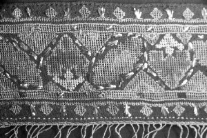 Embroidery from the collection of NEM, photographed for prof.Ivan Koev; town of Sofia; 1946-1952; taken by N. Nikolov; black-and-white negative with good quality, dirty; 24x36 mm; Inventory in Bulgarian language