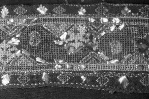 Embroidery from the collection of NEM; town of Sofia; 1946-1952; taken by N. Nikolov; black-and-white negative with good quality, dirty; 24x36 mm; Inventory in Bulgarian language