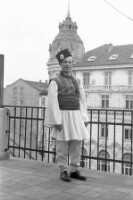 - Female costume from the collection of NEM - from the area of Gotze Delchev, taken in the National Theater; town of Sofia; 1946-1952; taken by N. Nikolov; black-and-white negative with good quality, dirty, scratchy; 24x36 mm; Inventory in Bulgarian language