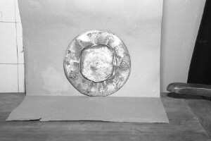 Metal dish from the collection of NEM; town of Sofia; 1948-1952; taken by N. Nikolov; Black-and-white negative with good quality, dirty, 24x36 mm; Inventory in Bulgarian language