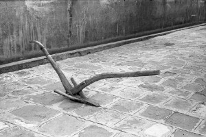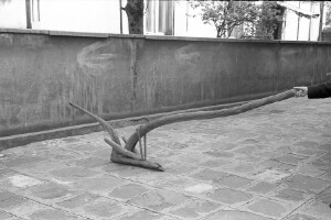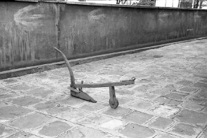Wooden plough - from the collection of NEM; town of Sofia; 1948-1952; taken by N. Nikolov; Black-and-white negative with good quality, scratchy; 24x36 mm; Inventory in Bulgarian language