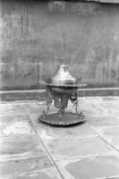 Metal candlestick and brazier - from the collection of NEM; town of Sofia; 1948-1952; taken by N. Nikolov; Black-and-white negative with good quality, scratchy; 24x36 mm; Inventory in Bulgarian language