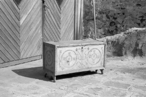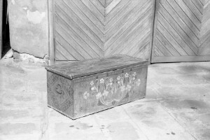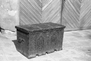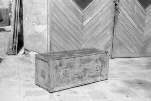 Wooden chest - from the collection of NEM; town of Sofia; 1948-1952; taken by N. Nikolov; Black-and-white negative with good quality, dirty; 24x36 mm; Inventory in Bulgarian language