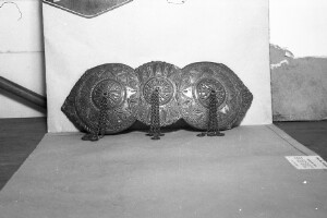 "Pafti" (Belt buckles) - from the collection of NEM; town of Sofia; 1948-1952; taken by N. Nikolov; Black-and-white negative with good quality, dirty, ; 24x36 mm; Inventory in Bulgarian language