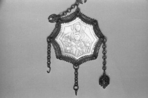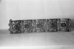 "Pafta" (Belt buckle) - from the collection of NEM; town of Sofia; 1948-1952; taken by N. Nikolov; Black-and-white negative with good quality, dirty; 24x36 mm; Inventory in Bulgarian language
