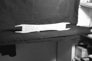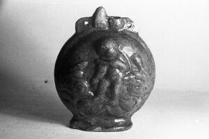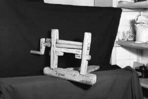 Wooden candlestick in form of "foals" - from the collection of NEM; town of Sofia; 1948-1952; taken by N. Nikolov; Black-and-white negative with good quality, dirty; 24x36 mm; Inventory in Bulgarian language