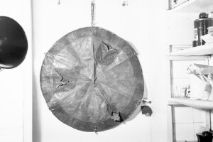 Spinning-wheel - from the collection of NEM; town of Sofia; 1948-1952; taken by N. Nikolov; Black-and-white negative with good quality, dirty; 24x36 mm; Inventory in Bulgarian language