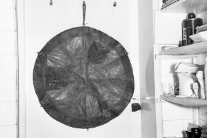 Wooden wine vessel - from the collection of NEM; town of Sofia; 1948-1952; taken by N. Nikolov; Black-and-white negative with good quality, dirty; 24x36 mm; Inventory in Bulgarian language