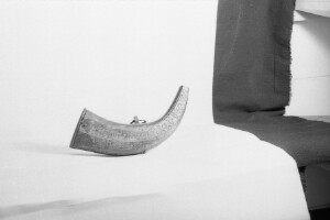 "Horn" for gunpowder - from the collection of NEM; town of Sofia; 1948-1952; taken by N. Nikolov; Black-and-white negative with good quality, dirty; 24x36 mm; Inventory in Bulgarian language