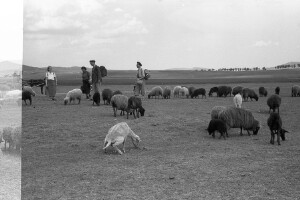 Ethnographers on their way to the village of Zlatar; village of Zlatar, district of Preslav; 1950; taken by Z. Dimitrov; Black-and-white negative with good quality, dirty; 24x36 mm; Inventory in Bulgarian language