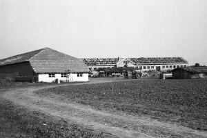 New buildings of the socialist agricultural Co-operative; village of Zlatar, district of Preslav; 1950; taken by Z. Dimitrov; Black-and-white negative with good quality, dirty; 24x36 mm; Inventory in Bulgarian language