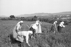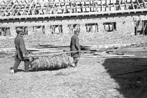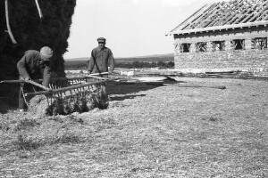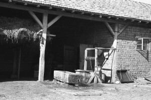 - Open shed with horse's cribs in a socialist agricultural Co-operative; village of Zlatar, district of Preslav; 1950; taken by Z. Dimitrov; Black-and-white negative with good quality, dirty; 24x36 mm; Inventory in Bulgarian language
