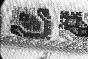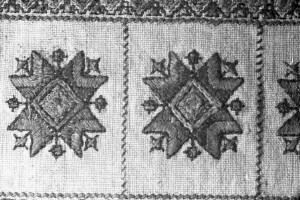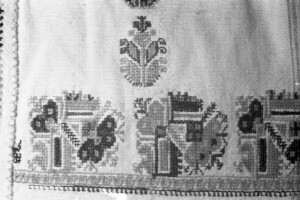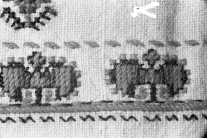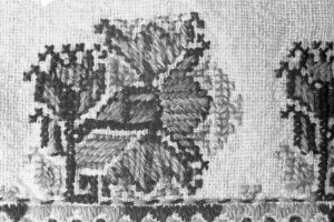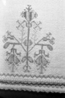 Detail of embroidery - from the collection of NEM; town of Sofia; 1948-1952; taken by N. Nikolov; Black-and-white negative with good quality, dirty; 24x36 mm; Inventory in Bulgarian language