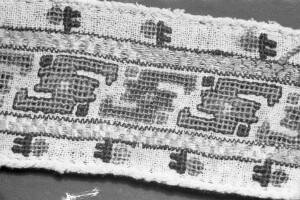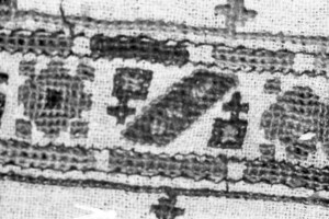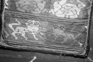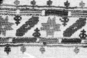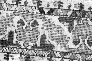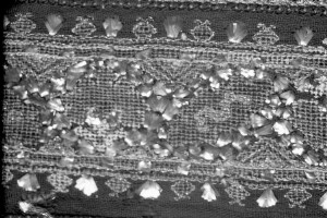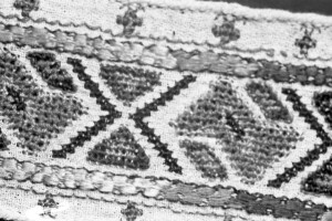 Detail of embroidery - from the collection of NEM; town of Sofia; 1948-1952; taken by N. Nikolov; Black-and-white negative with good quality, dirty; 24x36 mm; Inventory in Bulgarian language