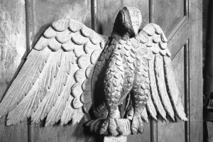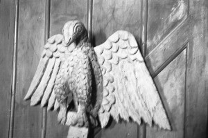Wood-carving, detail of a figure of an eagle - from the collection of NEM; town of Sofia; 1948-1952; taken by N. Nikolov; Black-and-white negative with good quality, dirty; 24x36 mm; Inventory in Bulgarian language