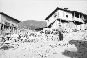 Goatherd with goats - unknown area; 1948-1952; taken by V. Marinov; Black-and-white negative with good quality, dirty; 24x36 mm; Inventory in Bulgarian language