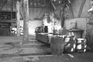 Interior of a Dairy-farm - unknown area; 1948-1952; taken by V. Marinov; Black-and-white negative with good quality, dirty; 24x36 mm; Inventory in Bulgarian language