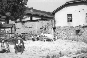 Threshing-floor - unknown area; 1948-1952; taken by V. Marinov; Black-and-white negative with good quality, dirty; 24x36 mm; Inventory in Bulgarian language