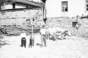 Wooden plough - unknown area; 1948-1952; taken by V. Marinov; Black-and-white negative with good quality, dirty; 24x36 mm; Inventory in Bulgarian language
