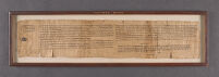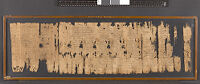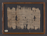 1 fragment of a bifolium from a papyrus codex, writing on both sides, mounted in glass