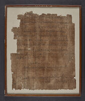 - Fragment of a bifolium from a codex containing the Gospel of John (Gregory-Aland P5; P. Lond. Lit. 213; P. Oxy. II 208; TM 61630), containing portions of chapters 1 and 20. On the recto (written along the fibres) are parts of John 1:33-40 (on the left) and John 20:11-17 (on the right). On the ve...