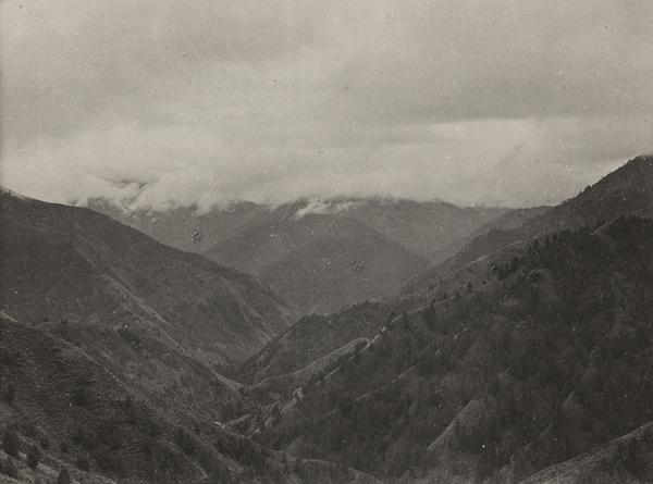 Genre: Portrait Photography Full-length portrait of Stein standing with the two dogs (Dash V and Spin Khan), in front of the house seen in print 4. Evidently taken on the same occasion. Subjects = Stein Collection